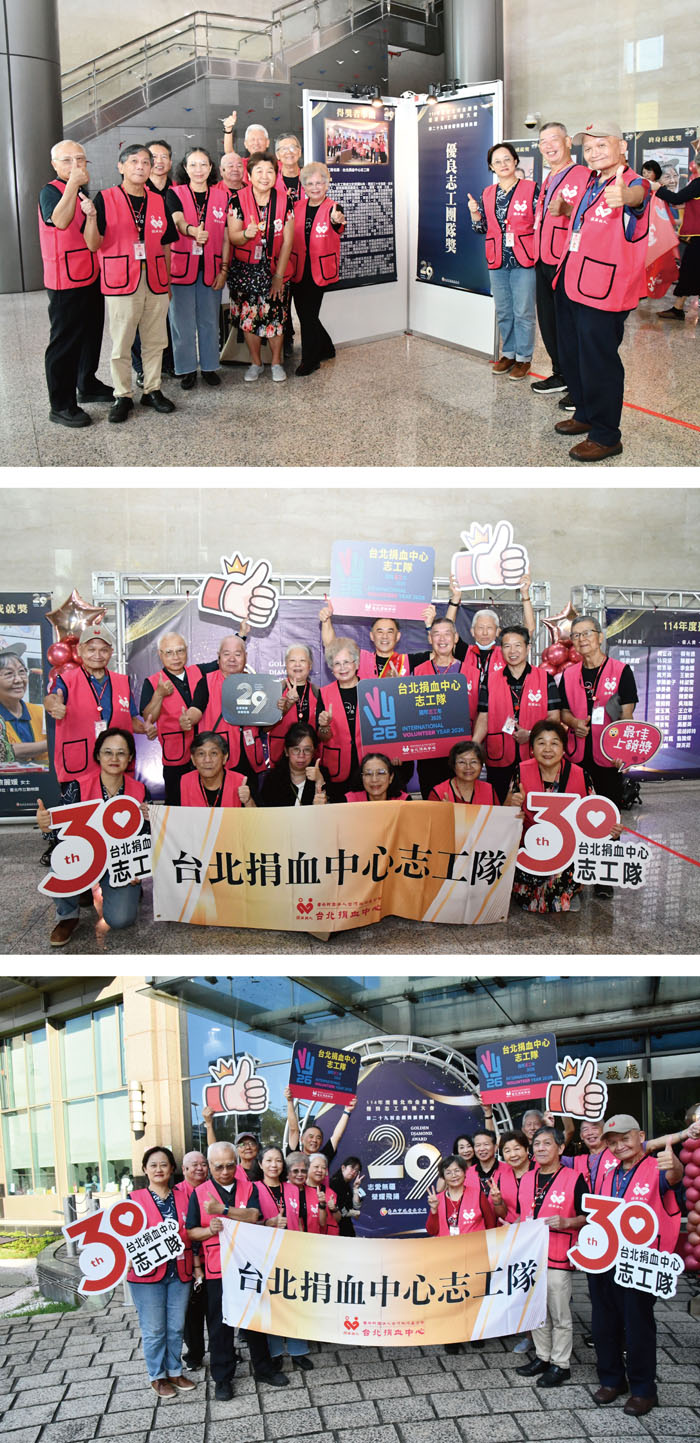 台北捐血中心志工隊成立於民國84年,創隊初期僅約50名志工。經過三十年持續培育與招募,目前志工人數已成長至160人,並建立完善的培訓制度及服務流程,成為一支具有高度向心力與專業素養的志工團隊。