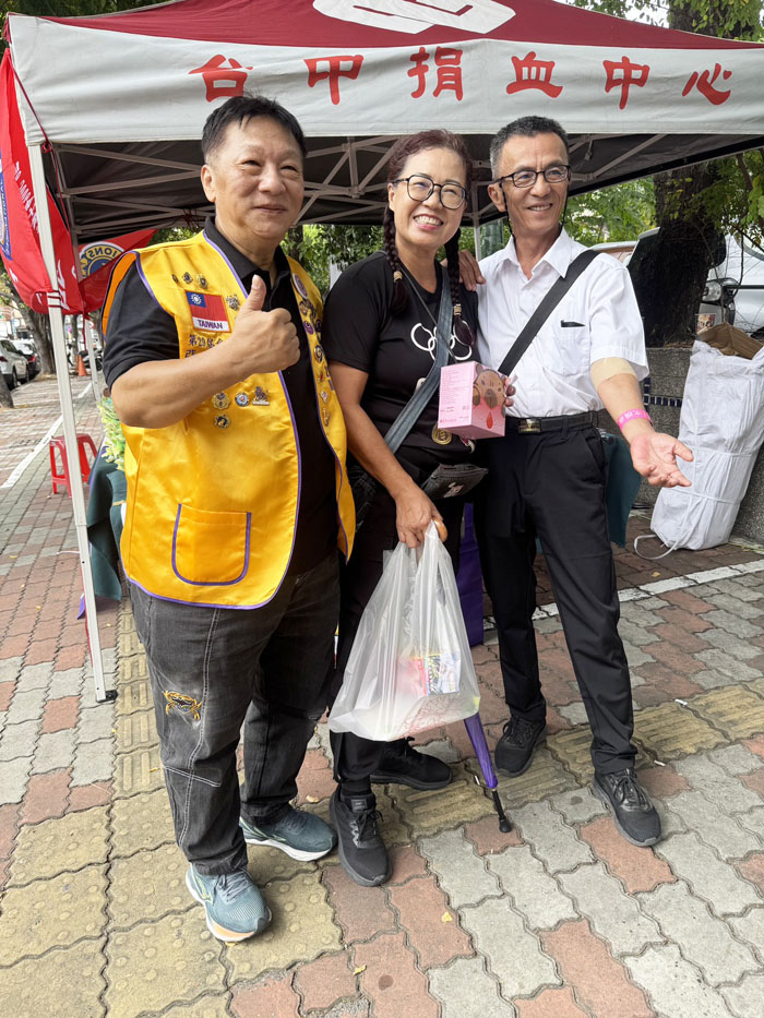 榮華獅子會也準備了豐富的紀念禮品,感謝大家熱情參與。許多民眾開心合照、上傳社群,讓整個台中公園洋溢著愛與笑容,也讓大家更深刻體會「捐血不只是幫助別人,更是讓愛延續」的真實力量。