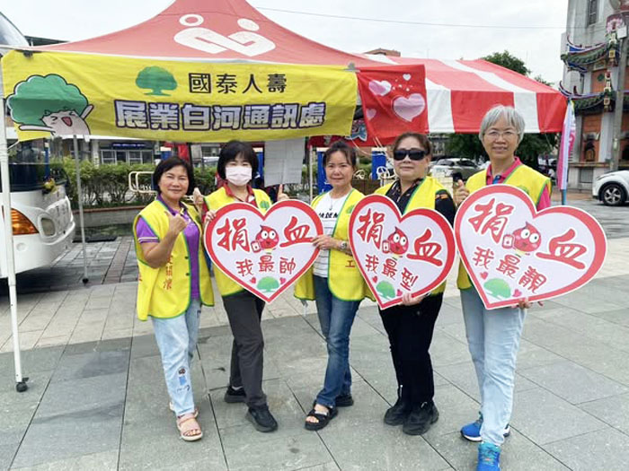 國泰人壽展業白河夥伴合力宣傳捐血。
