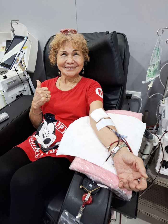 趙蔡瓊花回憶,起初她都捐全血,直到婆婆因嚴重肝硬化導致肝癌,需要定期輸用血漿和血小板醫治,才讓她開始接觸分離術捐血。得知一般病人每次輸用的血小板量必須從12袋全血分離而得後,趙蔡瓊花便改捐分離術血小版。