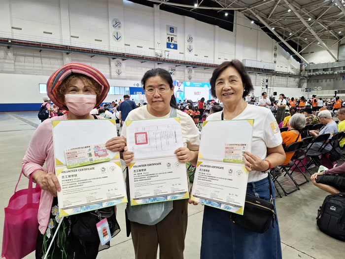 她笑說,做志工可以讓自己時時保持愉悅好心情,是她維持凍齡心不老的秘訣。「一腳踏入志工的世界就出不來了!」正是這股助人熱忱,讓她在民國111年獲得生福利部「志願服務銀牌獎」、111年及113年分別榮獲中華民國志願服務協會第20屆「三等志願服務獎章」、第22屆「二等志願服務獎章」的肯定。