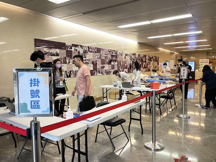 亞東醫院透過全院廣播,啟動醫院內部捐血作業機制,在大廳設立臨時捐血站。