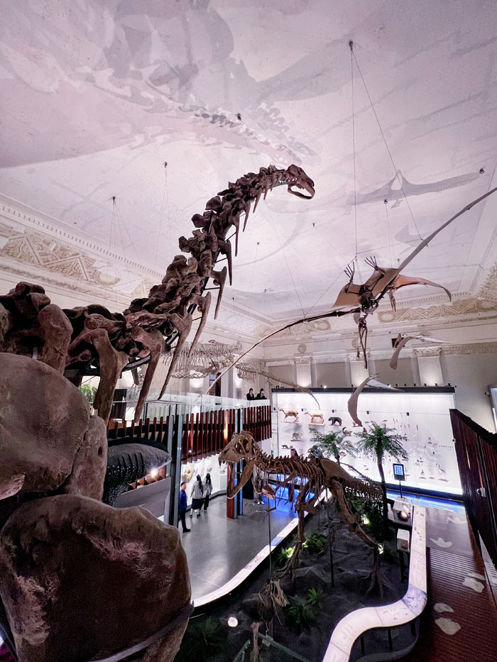 古生物館原是銀行建築,因此採用高聳的希臘廊柱、簡單的線條與顏色,塑造出令人安心放心的感覺。