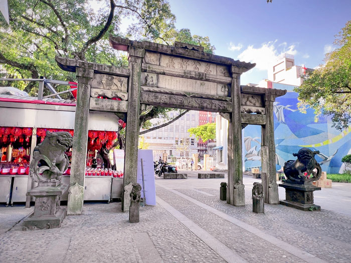 臺灣博物館本館旁的黃氏節孝坊,不遠處還有台北大天后宮的遺構。