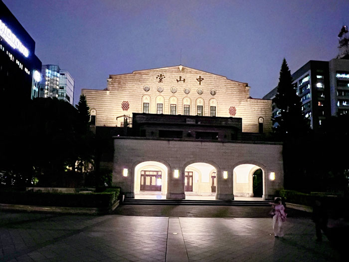 夜晚的中山堂在打光下顯現出另一種沈靜的氣息。