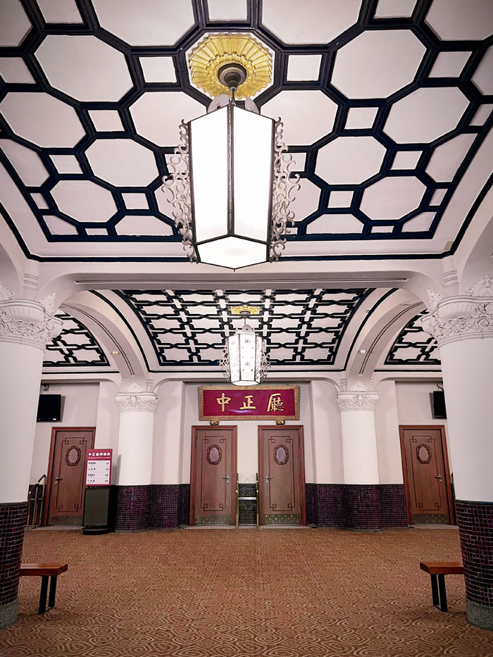 對許多四、五年級生而言,中山堂承載著看電影與欣賞表演的回憶。建於民國25年,日治時期此處稱為「台北公會堂」,由總督府營繕課的井手薰設計,他同時也是司法大廈、台灣基督教長老教會濟南教會與二二八國家紀念館的設計者。建築採用當時流行的折衷主義風格,結合鋼骨水泥結構,外牆貼上北投窯場生產的面磚與細緻的古典圖案裝飾磚,整體端莊而富層次。