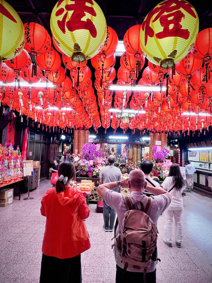 城隍廟正對面便是知名的「明星咖啡館」,許多文學家曾在此創作;而招牌甜點「俄羅斯軟糖」更是前總統夫人蔣方良女士思鄉時的慰藉。廟邊的城中市場從清朝起便是攤販聚集之處,曾是城內唯一的傳統市場。雖然時代更迭,如今的城中市場依然深受家庭主婦喜愛,無論是小吃、服飾或日用品都能買得盡興。白天時市場總是人潮不斷,走進其中,依舊能感受到兒時陪著母親逛街的親切感。