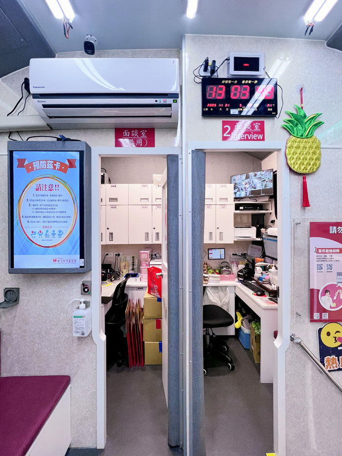 捐血車裝設電動門和無線叫號系統,變得更親民友善。