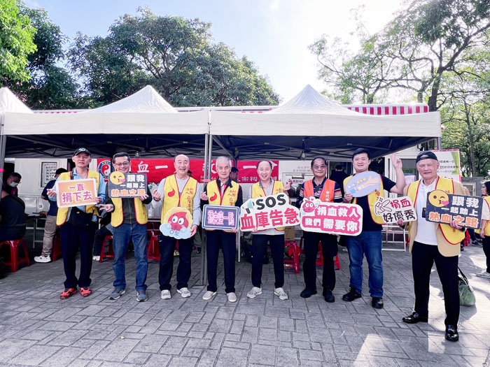 因為腹地廣大,公園號在週末經常是各熱心社福團體舉辦捐血活動的好地方。圖為財團法人台灣李氏宗祠熱血的志工夥伴們在現場辦捐血活動。