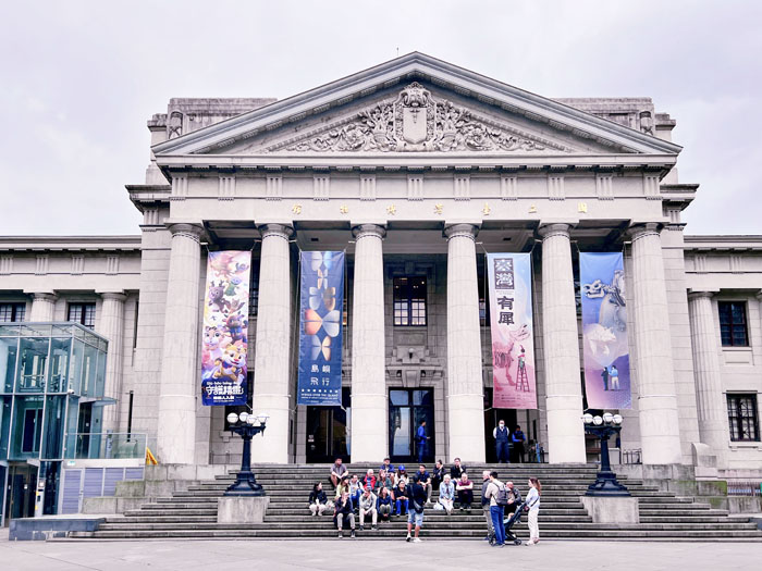 入口立面以六根高聳的多立克柱呈現莊嚴氣勢,山牆花葉雕紋、洗石子牆面與彩繪玻璃交織出新古典主義的和諧之美。走入館內,一樓兩側為定期更換主題的特展廳,展覽跨足考古、人類學到環境議題,常與國內外機構合作,內容豐富而具深度。登上二樓,「博物臺灣」常設展區則以「自然臺灣」與「浮生臺灣」為主題;前者探索島嶼的地質、地貌與生態,後者則呈現族群移動、聚落形成與文化的多樣性,讓觀者透過歷史脈絡看見臺灣的故事。