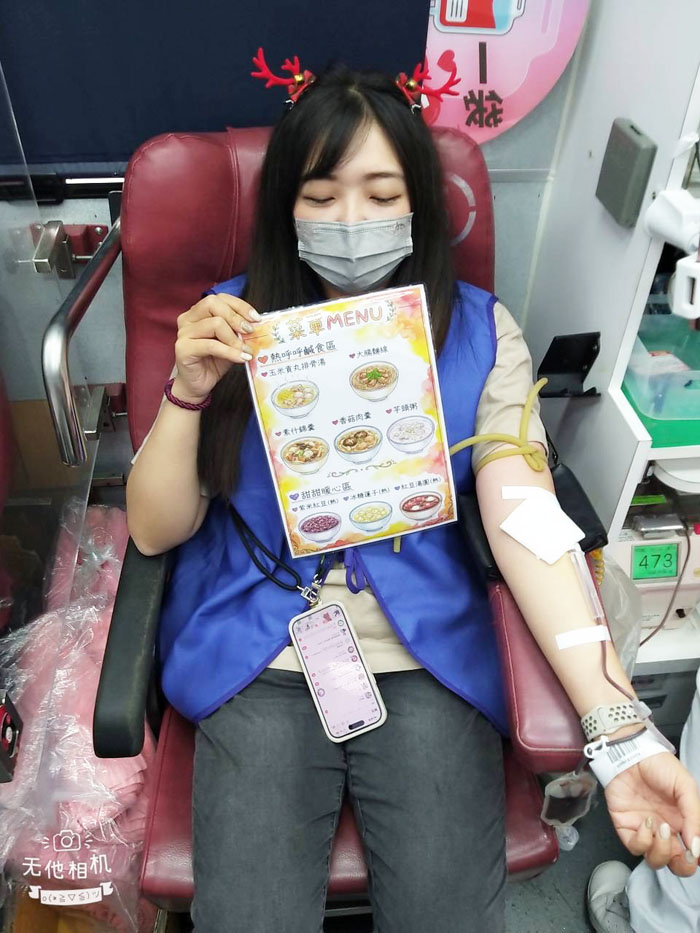 中午時段,更是活動的一大亮點,熱騰騰的排骨湯、順口暖胃的麵線、香濃綿密的芋頭粥,以及甜而不膩的甜湯,不僅暖胃更暖人心。許多完成捐血的志工與民眾圍坐用餐,分享捐血的心情,現場宛如一場溫馨的歲末聚會,讓公益不再只是付出,而是一種快樂且值得期待的參與。