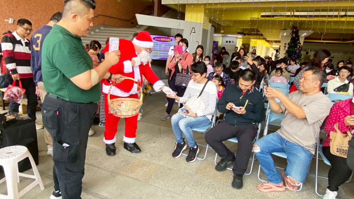 下午時分,伴隨著歡樂音樂聲,聖誕老公公驚喜現身,為活動掀起另一波高潮。紅色服裝、帶著滿滿笑容的聖誕老公公穿梭在人群中,親手發送糖果,讓大朋友、小朋友都露出開心笑容,也吸引不少捐血志工與民眾一同合影,為這場充滿愛的活動留下珍貴回憶。