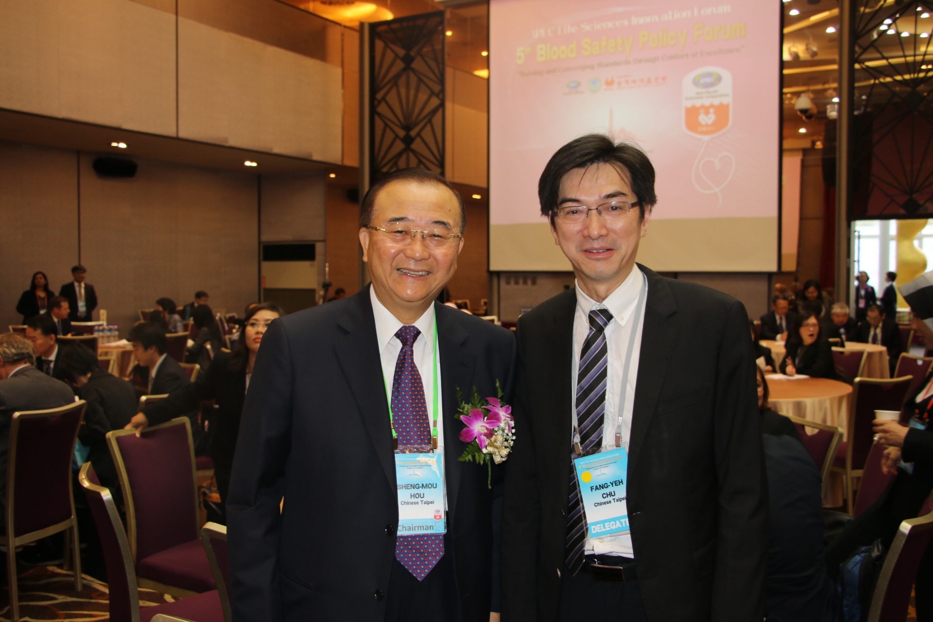 107年12月10日,在APEC血液安全政策論壇上與台灣血液基金會董事長侯勝茂合影。