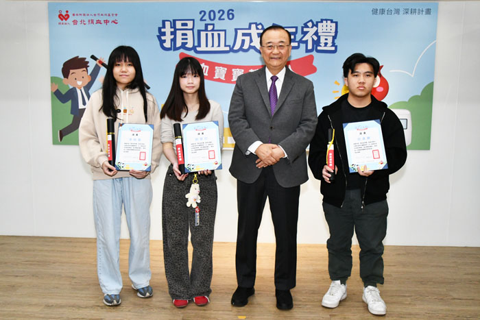 在少子化的浪潮下,醫療用血的穩定供應正面臨世代傳承的挑戰。為鼓勵年輕世代投入公益,台北捐血中心於3月26日假台灣血液基金會會議室舉辦「血寶寶轉大人—捐血成年禮」活動。現場多位青年學子在完成人生第一次捐血後,由台灣血液基金會董事長侯勝茂授予證書,象徵轉變為有能力助人者,完成一場意義非凡的熱血儀式。