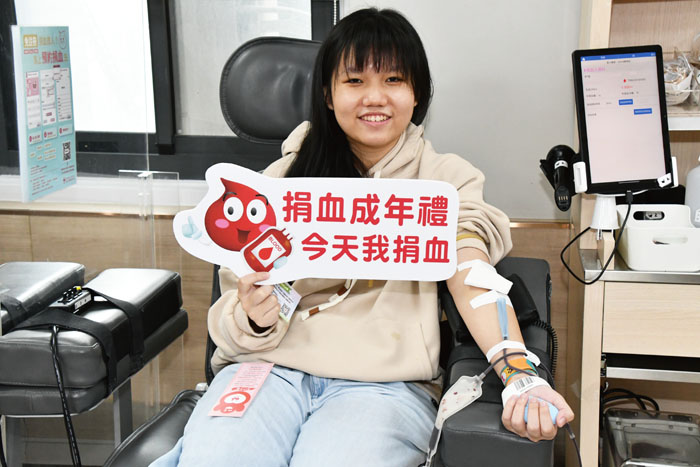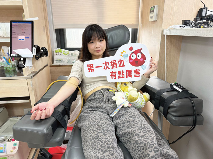 城市科大二年級的李宥萱,因為親戚的鼓勵與媽媽的全力支持,今天在母親的陪同下勇敢邁出了第一步。她坦言,過去雖然校園內常有捐血活動,但總覺得與自己有些距離,直到這次深入了解後,才決定嘗試這份極具意義的成年禮。