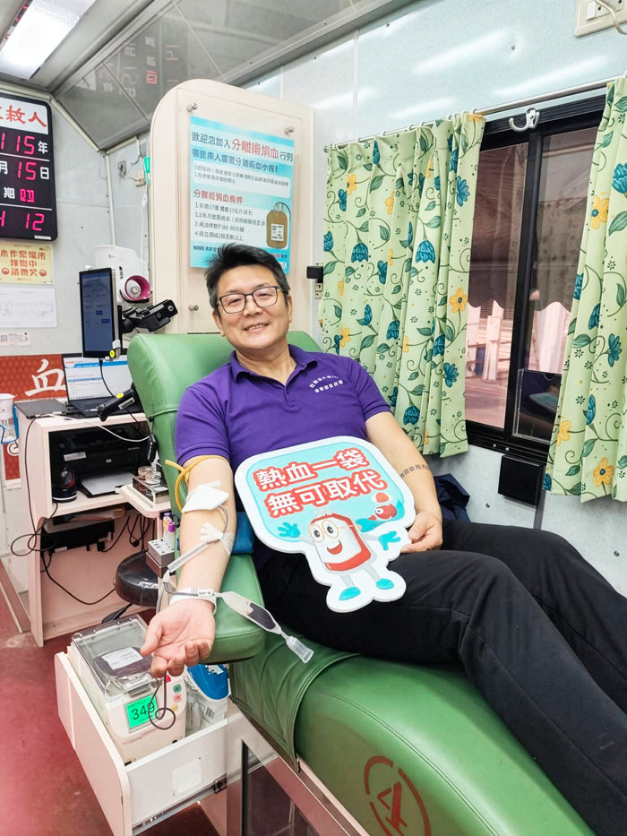 他也為自己訂下明確的捐血人生目標——256 袋全血。現年 49 歲的他計算過,若身體狀況允許,捐到 70 歲仍有 16 年時間可逐步達成。雖曾嘗試耗時較長的分離術血小板,但因需較長時間,時間不易安排,最終仍選擇以全血作為主要捐血方式,穩定捐下去。