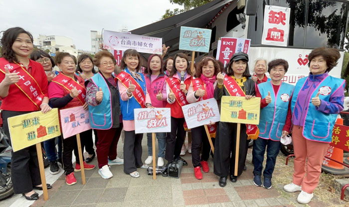 台南市婦女會號召12個婦女會聯合舉辦捐血活動。