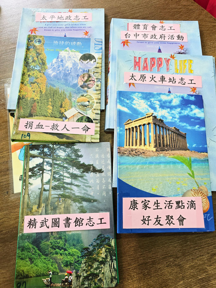 如今已70歲的他,至今每週仍然在精武圖書館、太原火車站、太平地政事務所擔任志工,遇到體育會賽事臨時需要志工,他也義不容辭。現在他擁有許多自己的相簿,捐血的回憶也是其中一本。回想從19歲開始捐血,如今將畫下句點,他說:「我始終覺得生活就是要充滿動力,心中要有所執著,並要設定追求的目標,這樣生活才有意義。我的初衷是『捐血一袋,救人一命』,因此,在過往的歲月中,能做好這件事,就已經足夠讓我熱血沸騰了。」