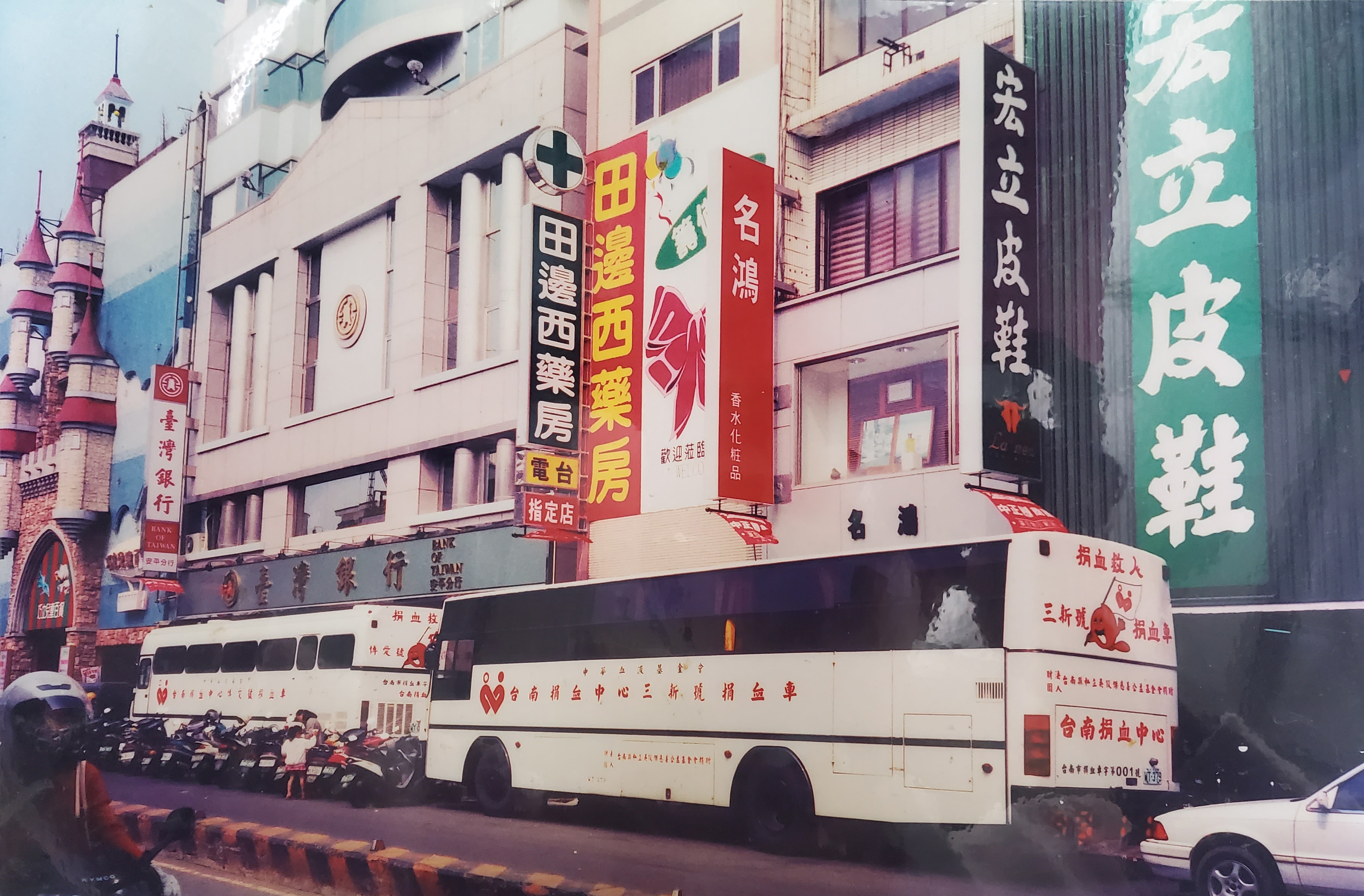 每年十月左右,田邊藥局外或附近台灣銀行空曠處就會開來一到兩輛的捐血車,在中正路人聲鼎沸的街道上,格外的醒目,而且來捐血的人還能拿獎品,這樣的活動連續數十年從不間斷,簡直就像藥局的週年活動,只要是住附近的人都曉得這件事,因此常常有人十月還未到,就會上門問:「今年何時會有捐血車來啊?」