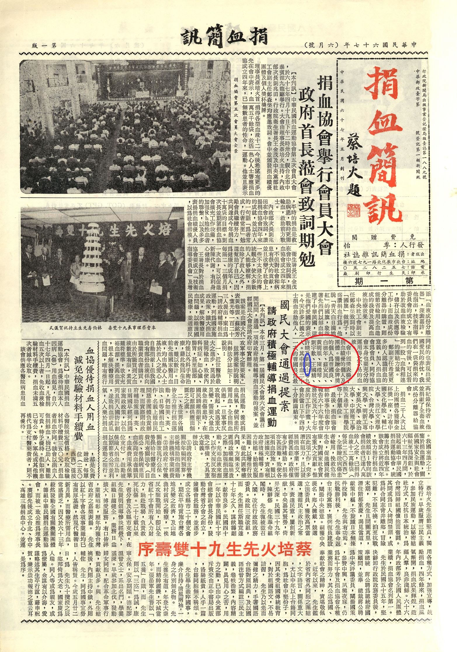 民國67年捐血簡訊第一期。(資料來源:中華捐血運動協會捐血史料資料庫)