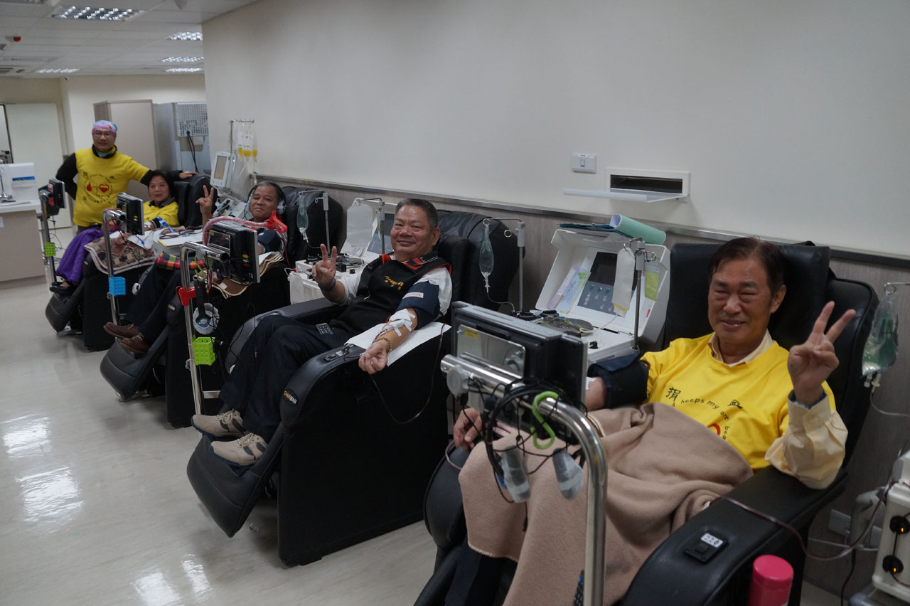 劉同山(右三),民國106年參加二八牧雲齋舉辦捐血活動,第1352次捐血。