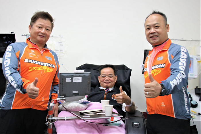 百果山登山車協會會長連建曄、總幹事黃聖翔,特地前來分享許書達是會兄們眼中的熱血騎士,也是捐血模範生。許書達從員林到彰化每二周一次的捐血行動,定期捐血的精神,也帶動了該協會每年舉辦一次響應捐血公益活動。