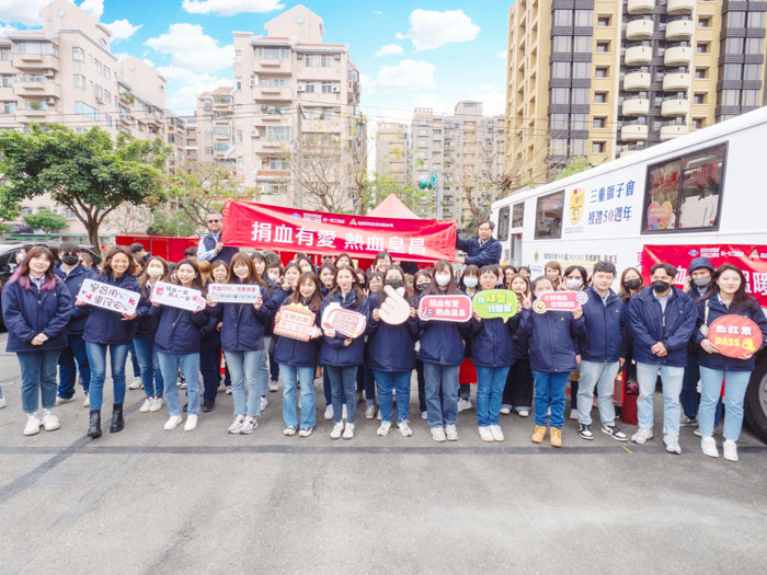 豐鑫皇昌集團同仁們於捐血車前合影。